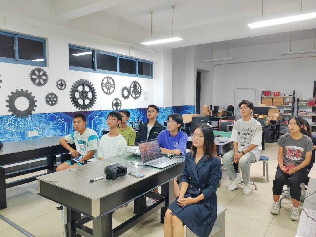图二 电子科技园成员们观看宣传片