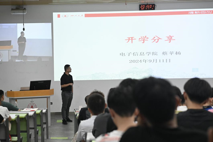 会议开始,学院副院长张启灿教授发表致辞,他首先对新生的到来表示热烈的欢迎。他指出,研究生的成长需要不同角色的老师为大家保驾护航,辅导员在日常事务管理和思想引领中起着关键作用,教务老师负责课程安排、成绩管理和学术规范指导,而导师则是学术探索道路上的引路人,为同学们提供关键的支持与指导。此外,张院长还针对学术能力培养和学术诚信提出了宝贵的建议和指导,强调了在学术探索中不断追求卓越和坚守诚信的重要性。