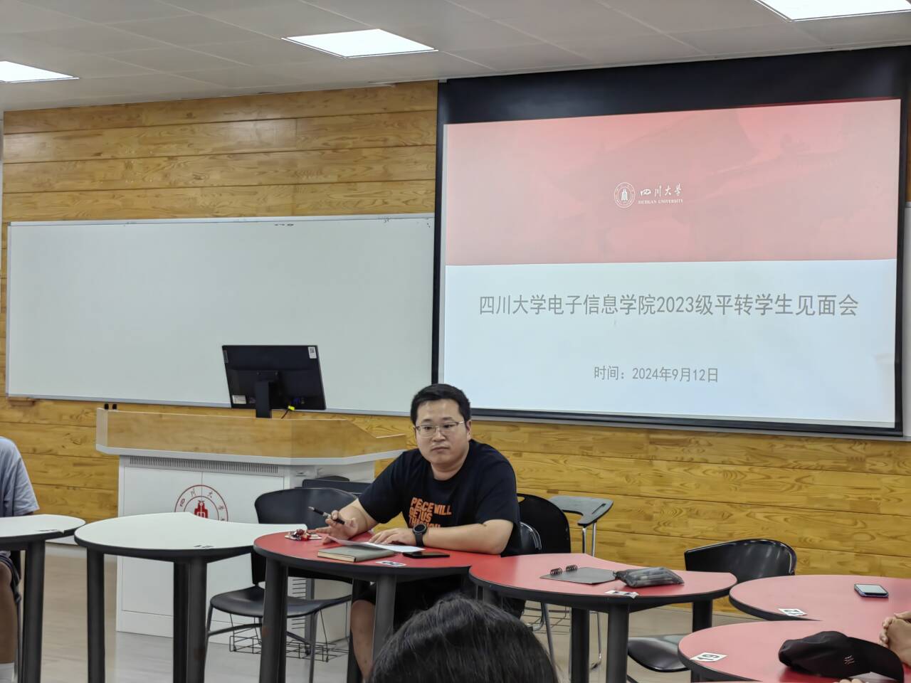 9月12日,在江安校区综合楼B座303顺利举办了电子信息学院本科2023级平转学生见面会。本次会议由辅导员申鑫老师主持,目的在于协助新转入的学生快速融入新生活。