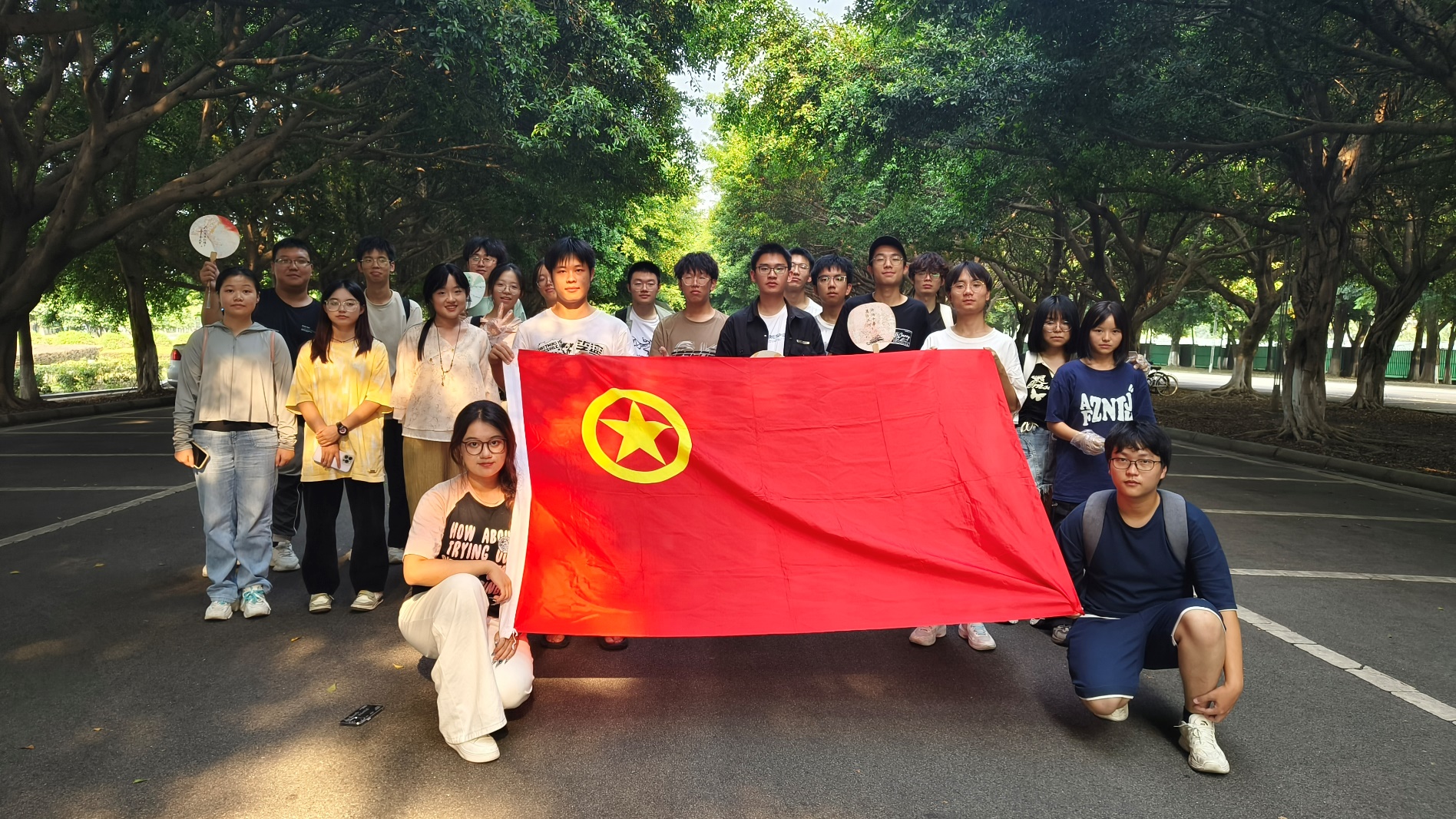 最后,在国庆佳节来临之际,在宣传委员李昕怡带领下,大家用积分兑换到印有国庆主题图案或文字的空白扇子一起体验了传统工艺——漆扇制作。漆扇采用了一种中国特有的、拥有悠久历史的天然涂料——大漆作为漂染材料,这不仅是一种现代创新工艺,也是对传统技艺的巧妙融合。
