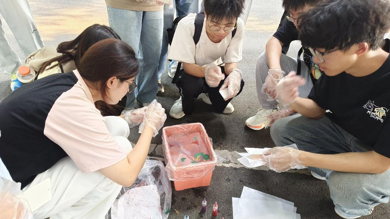 当每位同学都亲手完成自己的作品后,大家纷纷表达了内心的喜悦与感悟。其中,团员仲昕朔特别提到“这不仅是一次寓教于乐的文化之旅,也是对中华优秀传统文化的一次深刻致敬”。漆扇的制作让大家亲手感受到了中国传统艺术的魅力,也加深了大家对祖国文化的认识与自豪感。同学们做出的每一把精致的漂染扇子都是对美好生活的祝愿,也是对伟大祖国最真挚的祝福。