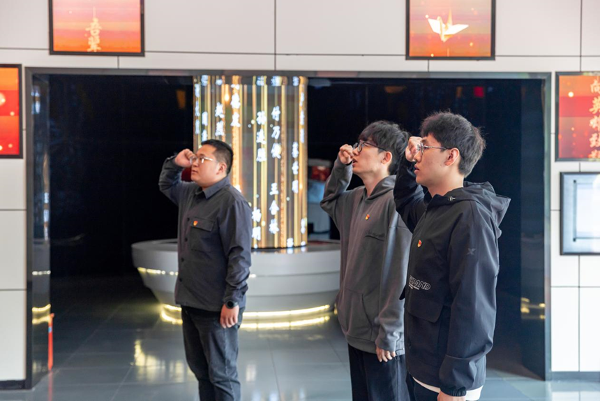 参观结束后,在申鑫老师带领下,党员们举起右手,面对党旗重温入党誓词。“我志愿加入中国共产党,拥护党的纲领,遵守党的章程,履行党员义务……”铿锵誓言回荡在陵园上空,这不仅是对党员们自身信仰和初心的坚定,更是对先烈精神的传承与发扬。