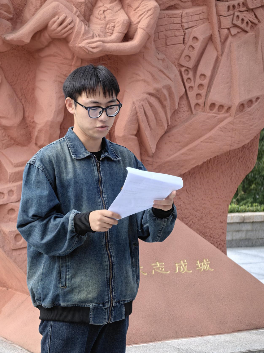 活动接近尾声,本科学生代表朱远诚和研究生代表杨树宇分别分享了他们的参观感受。他们表示,烈士们的英勇事迹让他们深感震撼与敬佩,同时也激发了他们努力学习、勇于担当的责任感。两位代表的发言引起了在场同学的强烈共鸣,大家表示将以先烈为榜样,砥砺前行。