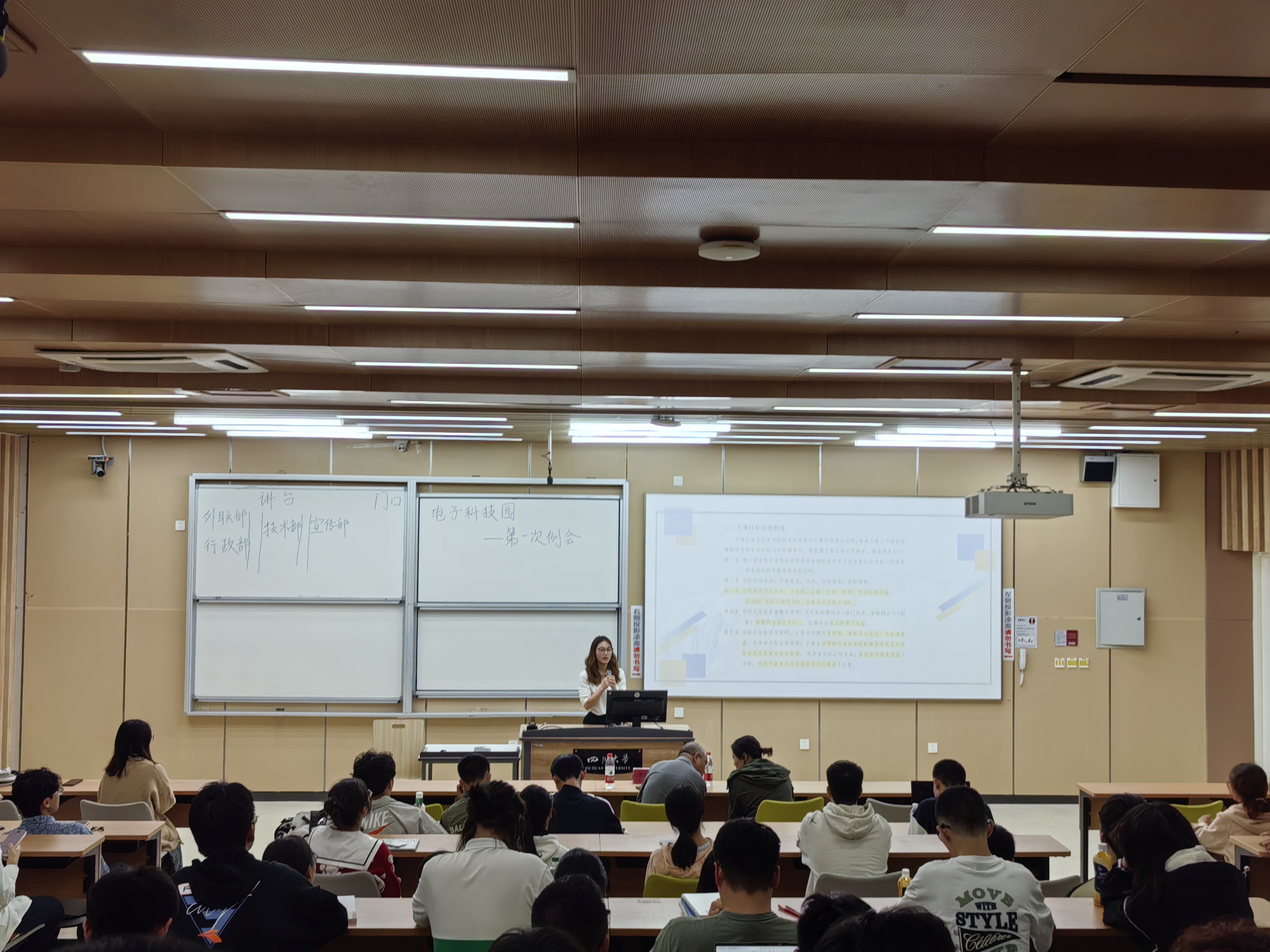 随后,李娇学姐为新干事讲解了干事考评细则,明确了干事考评标准及加分减分明细。最后,本次例会在热烈的掌声中顺利结束。