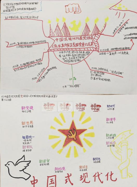 团员陈然认为:“在共绘环节中,我们小组通过绘制思维导图,将中国式现代化的各个方面联系起来,这个过程让我更加清晰地看到了现代化建设的全局。我深刻感受到,每个人的努力都是中国式现代化不可或缺的一部分。”在“共读、共学、共绘”三个环节中,每一位同学都学有所成,学有所获。