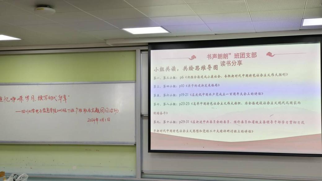 党的二十大擘画了以中国式现代化推进中华民族伟大复兴的宏伟蓝图,在波澜壮阔的时代画卷上,11月1日下午,best365中国官方网站电子信息学院2023级7班与9班团支部以青春之名,扬帆起航,联合开启了一场主题为“青春领航:共读中国式现代化”的读书分享会。团员青年们汇聚一堂,共同探索《习近平关于中国式现代化论述摘编》的深邃思想,以青春的视角解读中国式现代化的宏伟蓝图。此次活动不仅是一次知识的盛宴,更是一次心灵的洗礼,旨在引导团员青年深刻领会中国式现代化的精髓,激发他们为实现中华民族伟大复兴的中国梦而不懈奋斗。