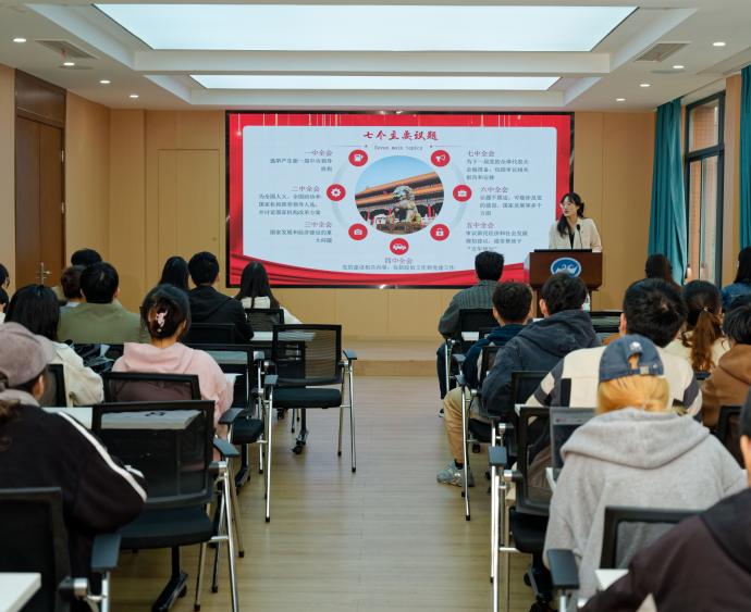 在党员同志做分享之后,活动进行了分组知识问答环节,现场随机分组,以小组为单位进行抢答PK,题目含领学内容和基础知识。现场各组同学积极参与活动,踊跃回答问题,充分展示了大家扎实的政治理论功底。本环节通过以赛促学,推动全体党员与积极分子深刻理解和把握全会精神的丰富内涵,确保全会精神得到有效贯彻。
