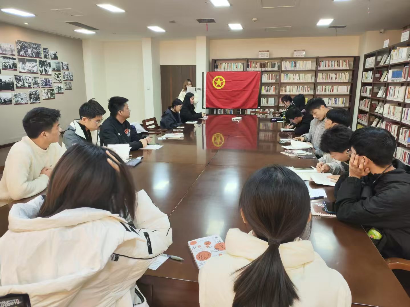 2022年,习近平总书记在致首届全民阅读大会的贺信中指出:“希望全社会都参与到阅读中来,形成爱读书、读好书、善读书的浓厚氛围。”为深入贯彻习近平总书记指示,在学院养成浓厚的读书氛围。2024年11月29日上午,两班团员代表在江安校区图书馆学习书屋汇聚一堂,在团支书的带领下,大家共读经典并摘抄自己喜爱的段落,将自己喜爱的书籍与同学们分享。