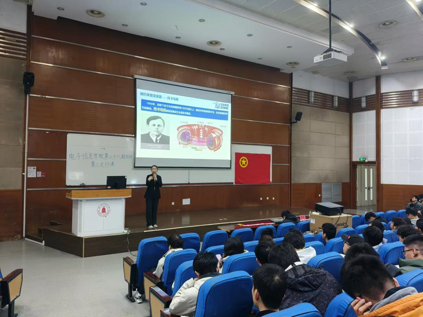 为深化学员对国家发展动态的理解,促进学员间的互动交流,增强彼此认识与团组织凝聚力,并进一步提升学员的思想理论水平和政治素养,电子信息学院团委于12月7日10时在江安校区综合楼C407举办第二十六期团校第二次行课。聚焦“中国式现代化的必由之路”这一主题,本次行课邀请到共青团十九大代表、中核集团核工业西南物理研究院高级工程师郑雪博士主讲,郑雪老师任中核集团核工业西南物理研究院聚变科学所团委书记、“人造太阳”博士科普团团长,同时也是团中央“青春心向党 奋进新征程”示范宣讲团成员、四川省“科技之光”青年宣讲团成员及四川省十佳优秀科普使者。