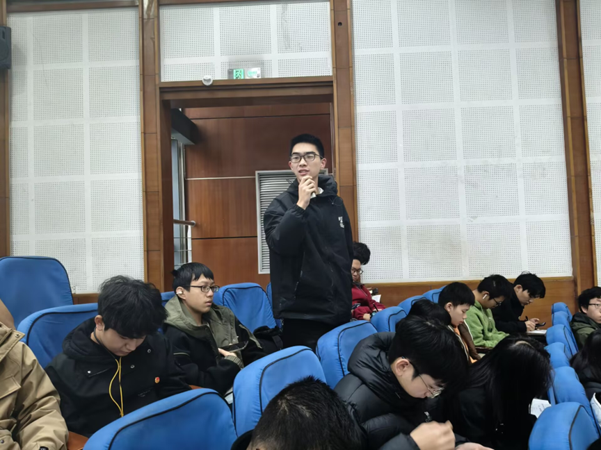 大会开始,主持人带领全体同学合唱团歌。接着,郑雪老师围绕人造太阳的相关知识与应用挑战与磁约束可控核聚变研究现状与中国在此方面的创新成果为我们带来了一场意义非凡的授课,通过介绍此项研究的重要意义与研究者背后的故事,在场学生们受益匪浅,坚定了为国奉献的信念。为引导学生进一步深入思考中国现代化进程中的关键议题,在随后的分组讨论环节,同学们就主持人提出的三个问题进行了深入思考,并踊跃分享自己的见解和想法。