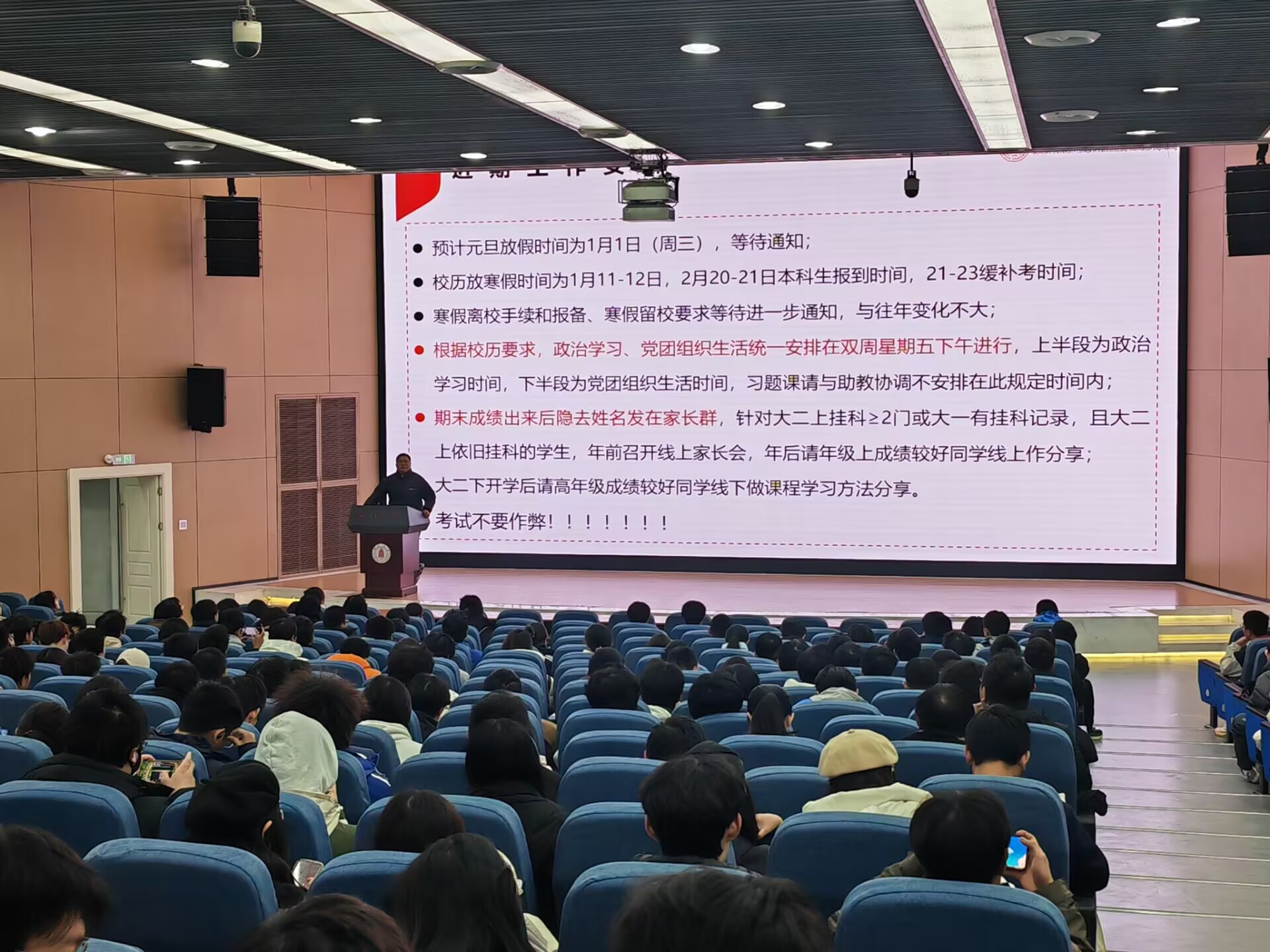 2024年12月20日,best365中国官方网站电子信息学院12月年级大会于在江安校区水上报告厅成功举行。本次大会由辅导员老师申鑫主持,向学生们详细传达了近期的工作安排和重要通知。