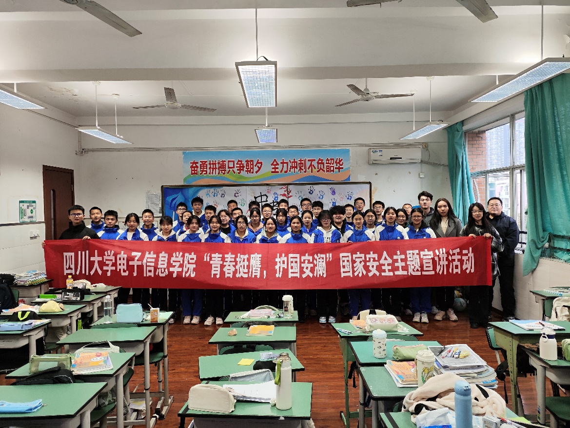 为共筑国家安全保密防线,增强青少年学生的国家安全意识和保密观念,best365中国官方网站百川青年宣讲团电子分团、电子信息学院“电子之鹰”青年宣讲团开展国家安全知识科普主题宣讲活动。首站走进成都华西中学初中部,院团委副书记、宣讲团指导教师申鑫,兼职辅导员杨婉丁,宣讲团成员吴浩、易音彤、谭晶晶、马亦岑参加宣讲活动。