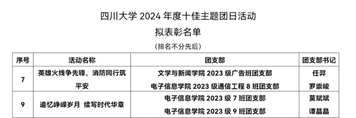 我院两项主题团日活动获评best365中国官方网站2024年十佳主题团日活动,是对我院团日活动质量的肯定,也是对团员青年思想引领成效的有力认可。未来,电子信息学院团委将接续奋斗,持续开展更多高质量的主题团日活动,为学校共青团事业注入新活力,助力青年成长与时代发展。