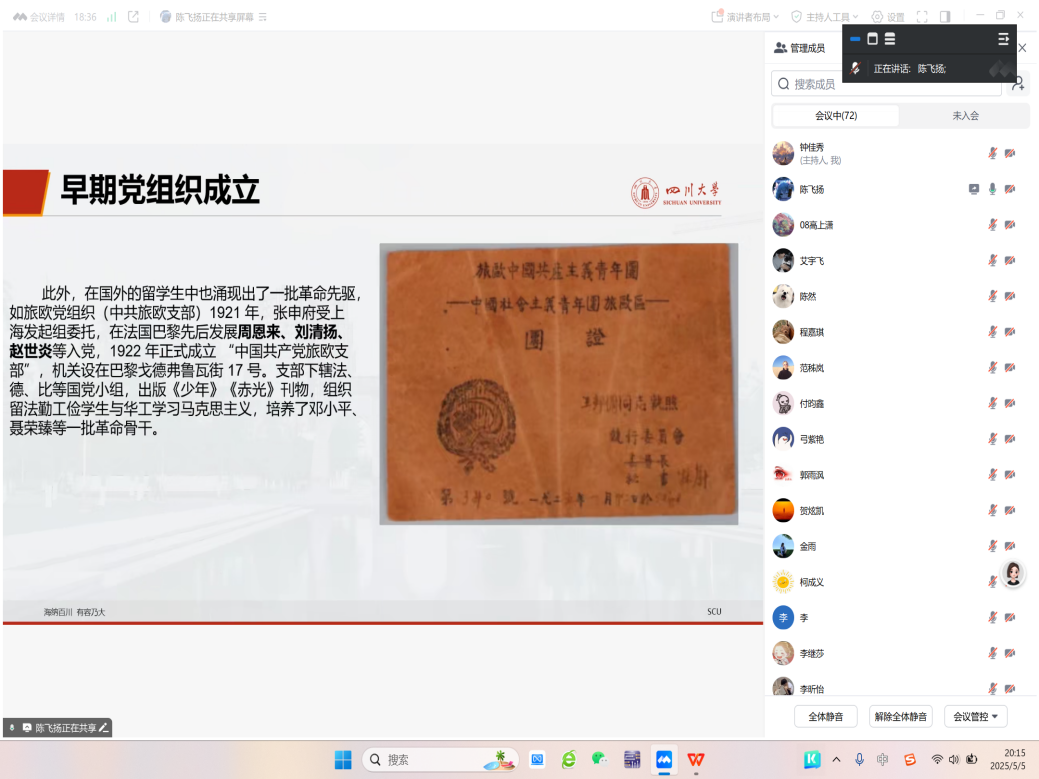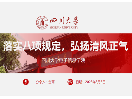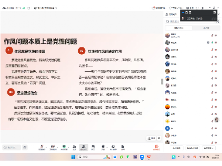 为进一步加强对支部党员、发展对象、入党积极分子和团推优分子的教育,电子信息学院江安本科党支部于2025年5月5日晚上八点在腾讯会议线上举行八项规定学习分享和“红途轮忆,青讲党史”主题活动暨读书分享会。支部书记申鑫,支部党员、发展对象、部分入党积极分子和团组织推优成员参会。