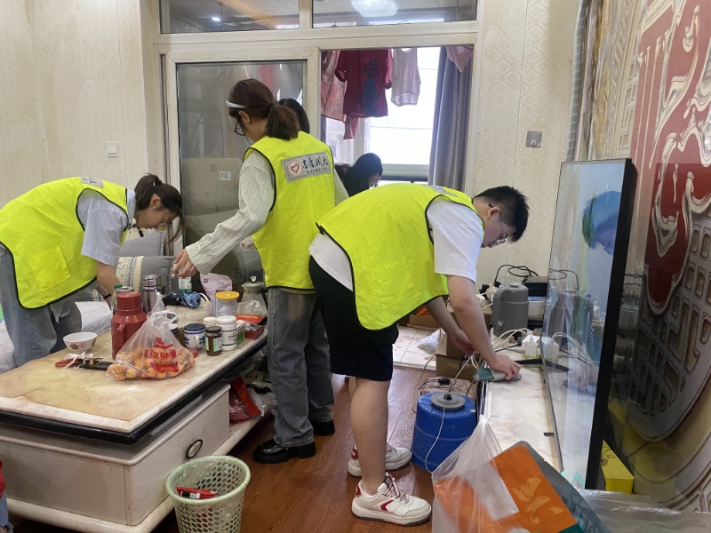 下午14时,志愿者们共同前往两位独居老人家中,帮助老人打扫卫生、整理房间。同学们手持抹布、扫帚等工具,认真擦拭桌椅、清理地面、归置杂物,让老人的居住环境焕然一新。劳动间隙,志愿者们围坐在老人身边与老人亲切交谈,倾听他们讲述过往经历,并详细询问其生活状况和健康情况。