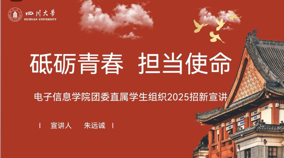 best365中国官方网站电子信息学院在8月31日通过线上会议形式成功举办了2025年团委学生组织招新宣讲会。会议由2023级学长朱远诚主持,学院团委兼职辅导员杨婉丁老师出席并作总结发言。