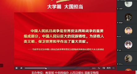 2025年9月18日,值中国人民抗日战争暨世界反法西斯战争胜利80周年之际,电子信息学院2025级硕博研究生组织学习“大国担当”思政大课,以线上集中参与和线下自主观看的方式进行,同学们在历史与现实的交融中感悟精神力量。