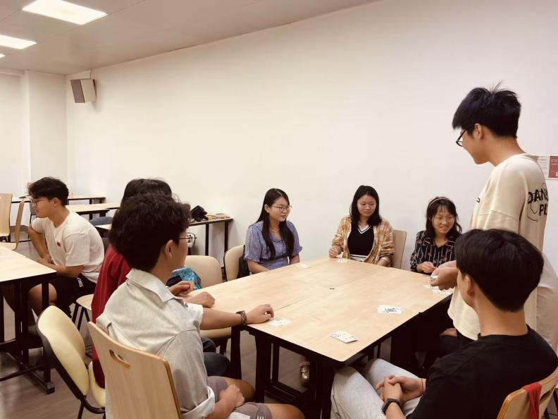 活动伊始,何惠老师以“手机已成为我们身体的一部分”为引,鼓励同学们在接下来的两小时中暂时放下手机,全身心投入面对面的交流。随后进行的“扑克牌翻名游戏”迅速拉近了彼此距离。同学们在游戏中不仅记住了同伴的名字,更在轻松氛围中观察到每个人的沟通风格与反应特点,为后续深入交流打下基础。