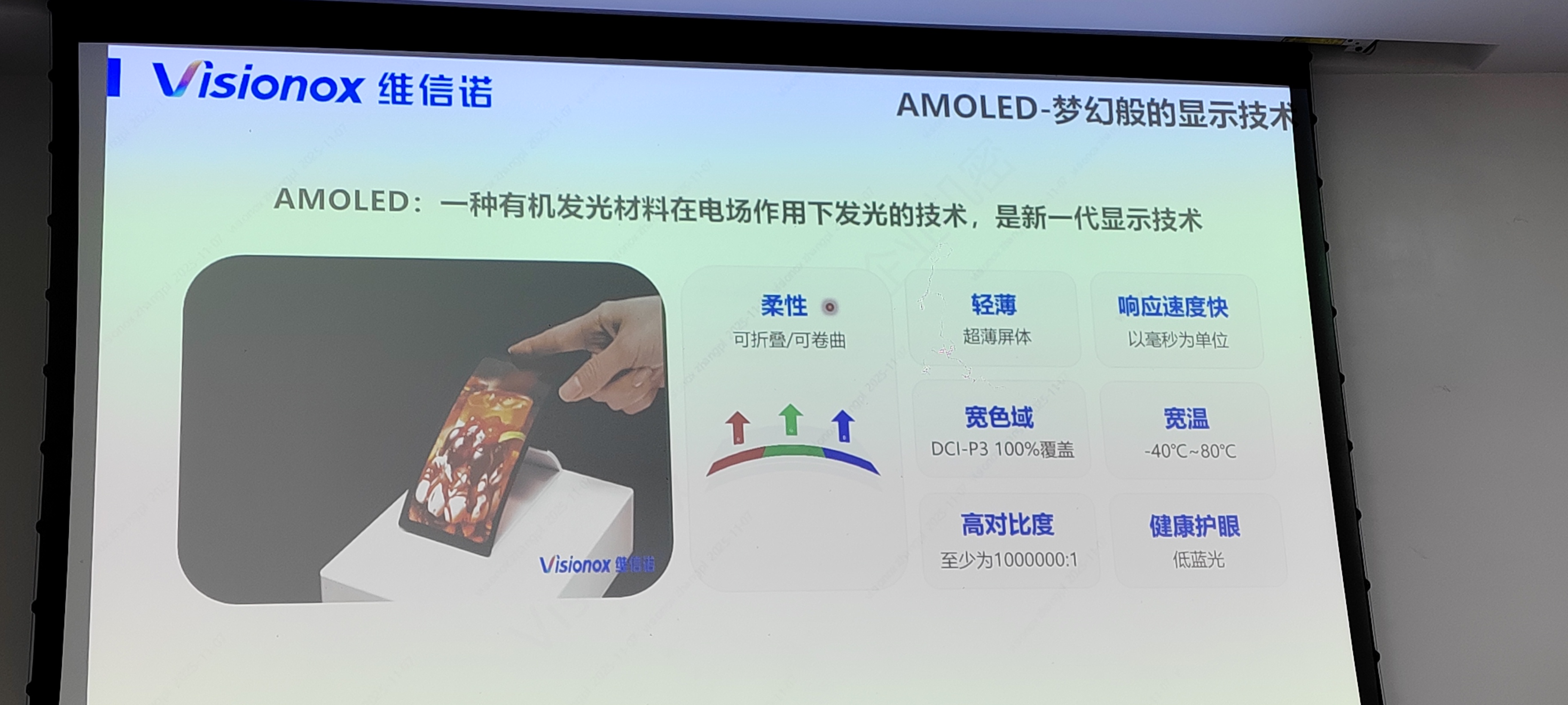 讲座中,嘉宾系统讲解了AMOLED显示技术的发展历程、设计原理与产业应用,并重点介绍了维信诺在柔性显示、创新显示等领域的技术突破与实践成果,生动展现了显示行业的最新趋势与未来方向。