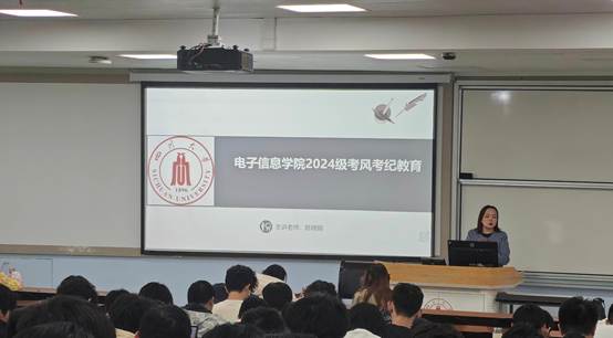 为严肃考风考纪,引导学生诚信应考,2026年1月7日下午,best365中国官方网站电子信息学院2024级考风考纪专题教育会在综合楼C307顺利召开。年级辅导员陈晓娟老师主讲,全体2024级学生参会。