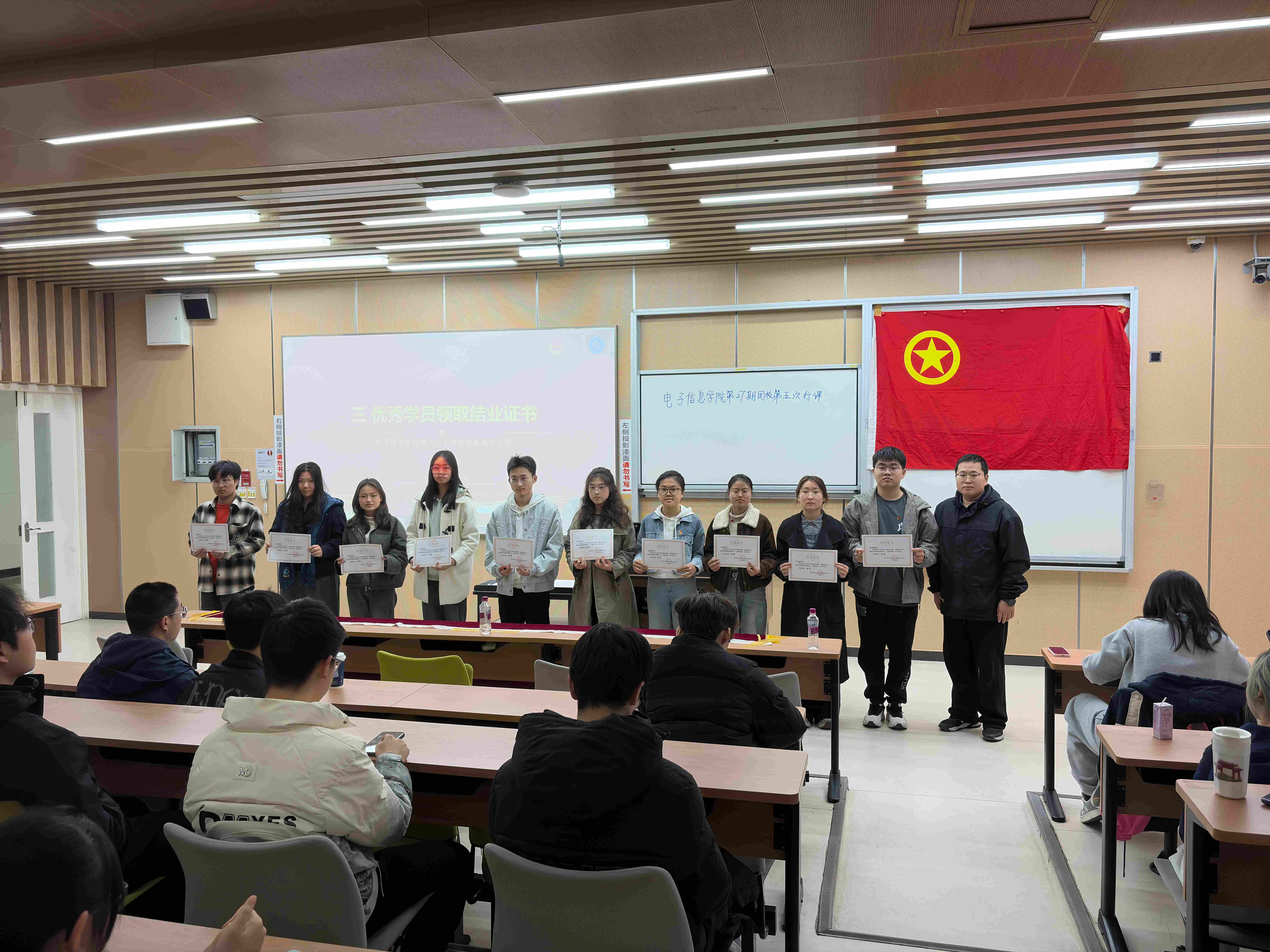 主题授课结束后,行课进入优秀团员表彰环节。申鑫为本期团校优秀团员代表颁发荣誉奖状,肯定团员们在思想学习、团校培训、日常实践中的优异表现。
