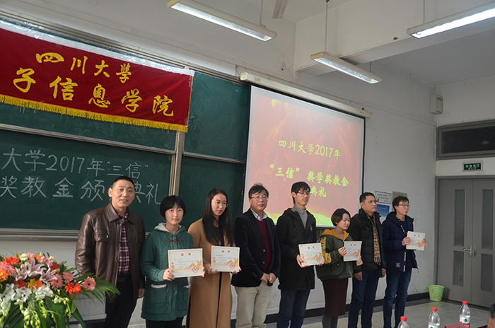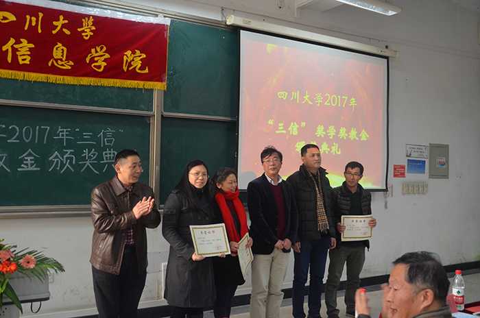 三信奖学奖教金的颁发不仅奖励了那些潜心于基础科学研究的教师和品学兼优的学生,也激励了更多的川大教师和学子自强不息,艰苦奋斗,在自己研究领域有所作为。正如习近平总书记在十九大报告中所述:“青年兴则国家兴,青年强则国家强”,作为新时代的优秀青年,老师与学生都要结合自身优势,为中国电子信息产业的发展做出贡献,为社会主义现代化的崭新篇章努力奋斗。