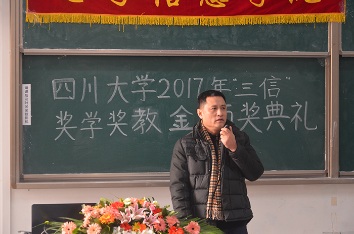 2017年12月22日,伴着冬日的暖阳,在best365中国官方网站 2017年度“三信”奖学奖教金颁奖典礼之后,下午两点二十分,在江安校区综合楼C座105教室,重庆三信电子有限公司总经理及电子信息学院兼职教授丁明先生为广大优秀教师、青年学子做了题为“关注行业发展,提升双创能力”的主题演讲。