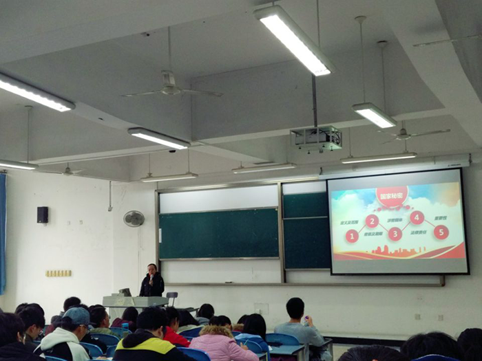 两位老师就国家保密安全的定义及范围、密级及期限、涉密载体、法律责任、重要性五个方面向2016级学生做了详细介绍。陈晓娟老师结合四川省多所国家保密工作单位的性质,向同学们强调了国家保密安全的重要性,尤其对本学院学习信息安全专业的同学们提出了严格要求,提醒他们时刻牢记自己的使命,做一个文明和合格的信息安全专业学生。陈林老师就自己身边朋友的事例,指出从事国家保密安全工作的特殊性。她说国家保密安全工作是一项极其特殊的工作,需要从业者拥有良好的道德风尚,坚守自己的底线。电子信息学院作为国家保密学院,肩负着培养具有国家安全战略思想优秀人才的重任。作为电子信息学院的一份子,一定要牢记国家保密安全的重要性,在学习专业知识的同时,注重培养自己的专业素养,严格要求自己,争取将来能够为国家保密安全建设贡献一份力量。