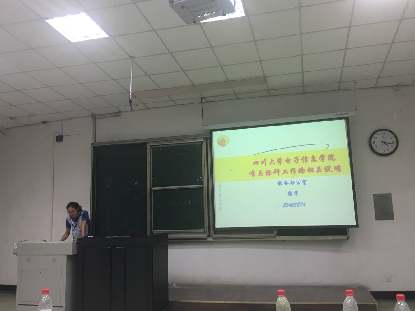 2017年9月26日下午2点,电子信息学院2017年研究生导师推介会在best365中国官方网站望江校区基础教学楼C座204举行。参加推介会的有电子信息学院院长冯国英教授,电子信息学院学术院长黄卡玛教授,电子信息学院党委陈笃海副书记,电子信息学院副院长张启灿教授、雷印杰副教授,网络空间安全学院副院长刘嘉勇教授,电子信息学院研究生导师陈星教授、刘长军教授、李大海教授、严华教授、卿粼波副教授,2014级辅导员吴秀玲老师,以及所有获得研究生推免资格以及即将参加考研的2014级优秀本科生。会议由陈笃海副书记主持。
