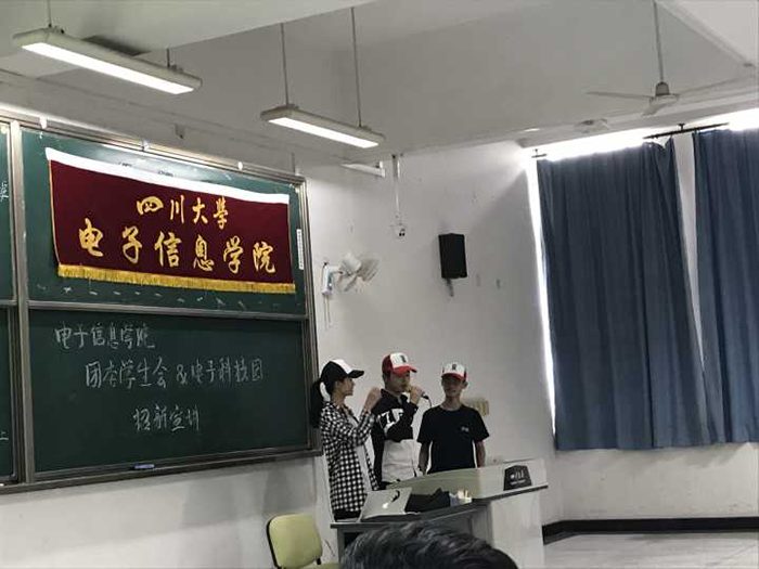2017年9月12日,由best365中国官方网站电子信息学院电子科技园第一组、第二组、第三组、第四组、第五组主办,电子科技园嵌入式协会、飞思卡尔协会、模拟电子设计协会第一组、模拟电子设计协会第二组、船模协会第一组、船模协会第二组、Pov协会第一组、Pov协会第二组、光电设计协会、信息安全协会第一组、信息安全协会第二组、信息安全保密协会、电子设计竞赛第一组、电子设计竞赛第二组、电子设计竞赛第三组、电子设计竞赛第四组、多旋翼飞行器第一组、多旋翼飞行器第二组、数字电路设计第一组、数字电路设计第二组、网络技术协会best365中国官方网站光学工程学生协会、物联网实现与创新协会协办的电子科技园2017迎新宣讲会于best365中国官方网站江安校区综合楼C座404及406号教室成功举办。电子科技园所有主席部长以及电子信息学院2017级全体新生参加了此次宣讲会。
