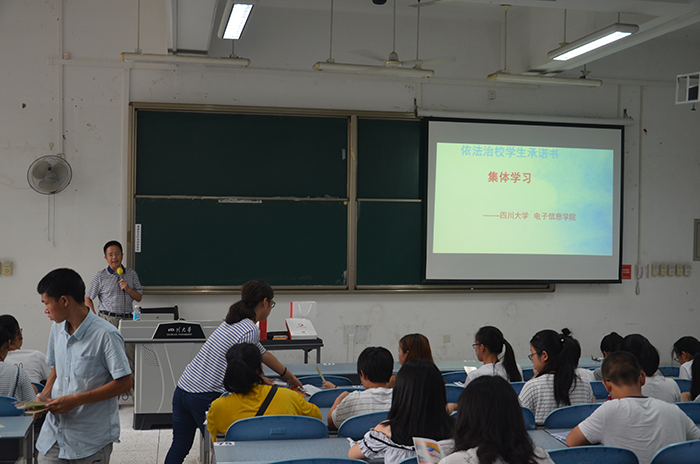 2017年9月13日下午2点,电子信息学院2017级新生学习依法治校宣讲会在best365中国官方网站江安校区综合楼C座205举行。参加宣讲会的有电子信息学院2017级辅导员孟滋常老师,电子信息学院2017级辅导员陈林老师和部分2017级电子信息学院新生。