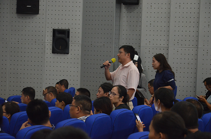 首先,邰明松书记就学院历史沿革、学科发展等向新生家长做了充分说明。他站在学生家长角度,借用《人民日报》上的一篇报道,生动地强调了大学生也应刻苦学习的重要性。之后,电子信息学院周新志副院长就学院本科人才培养教学计划向家长们进行了简要介绍。周院长明确指出,和往届专业不同的是,今年2017级本科生均以电子信息大类专业统招入院学习,并在一年半后按照教学计划安排分为电子信息工程、电子信息科学与技术、电子科学与技术、光电信息科学与技术四个方向。周新志副院长还向家长们介绍了学院的“第二课堂”。所谓“第二课堂”,是指电子信息学院充分发掘学生兴趣爱好,不仅有电子科技园向全院学生开放,还举办各类电子竞赛来激发同学们的潜能,也因如此,电子信息学院的学生们在各类比赛上都斩获了不俗的成绩。然后,院党委陈笃海副书记向家长们详细介绍了学院的学生管理体系。电子信息学院本着国家规定的200:1的学生教师配备原则,为2017级新生配备了一支结构合理,水平一流的学生管理教师队伍,充分保证了学生们在学习和生活上的质量。最后,在场的多位新生家长就卓越工程师班、推免政策、出国留学等方面向陈笃海副书记和周新志副院长提出了一些疑问,两位老师耐心解答了家长们的一切困惑,本次座谈会就此结束。