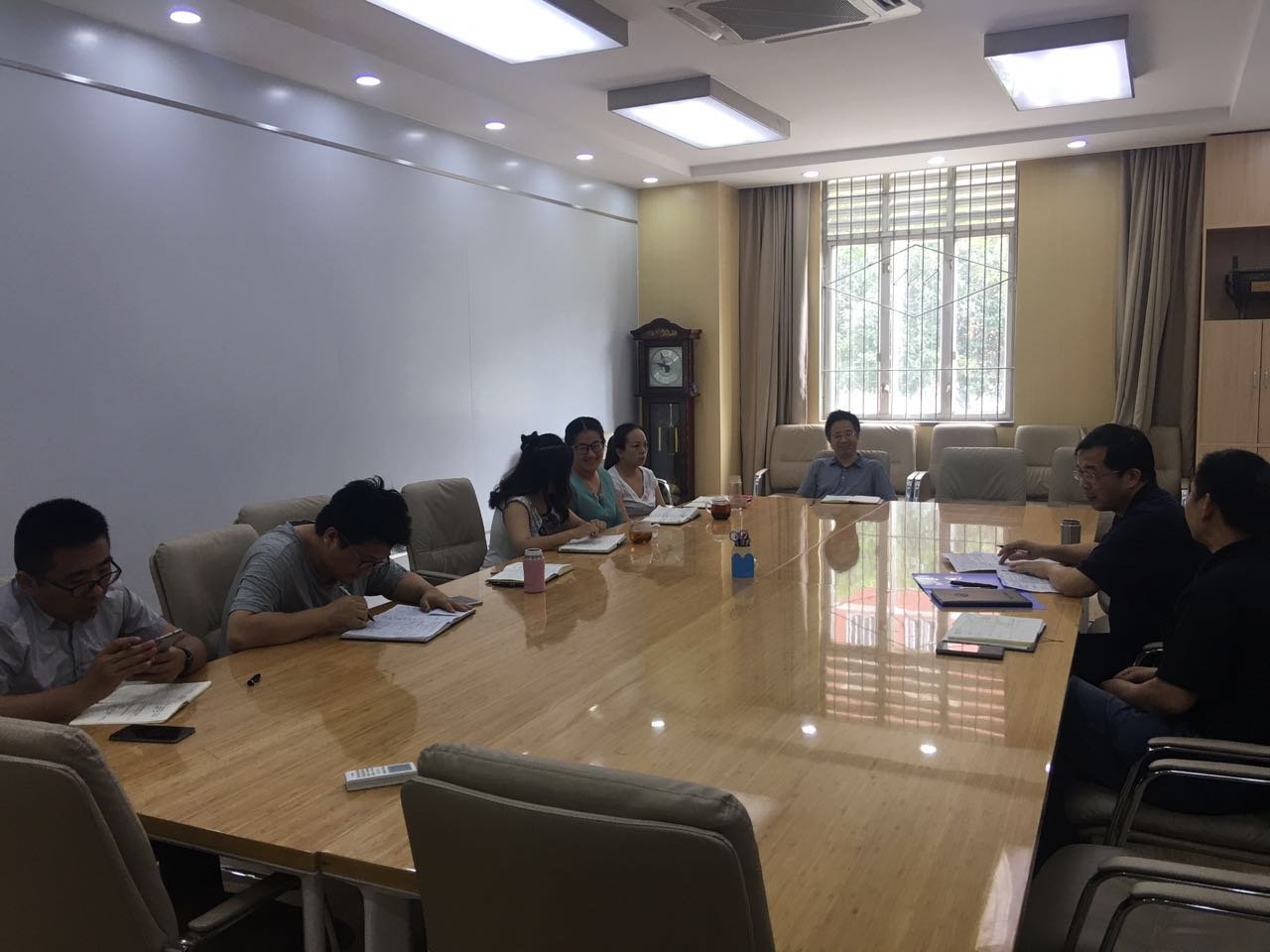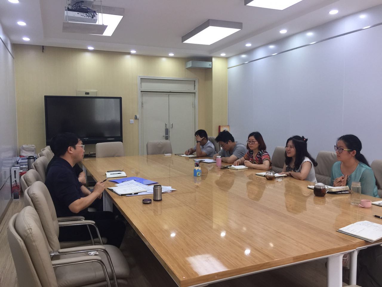 首先,邰明松书记向参加会议的辅导员老师做了简单的自我介绍。然后请各位辅导员根据自己所带年级和承担的分工的工作内容进行汇报。在汇报过程中,邰书记听得十分仔细,认真在记录本上记录,不时与辅导员交流讨论,分享自己一些经验和感悟。陈笃海副书记在每位辅导员老师发言后,都做了一个必要补充。学生科科长何惠老师代表学生科向邰书记汇报了学生科老师们近年来在科研、教学、管理方面做出的成绩。