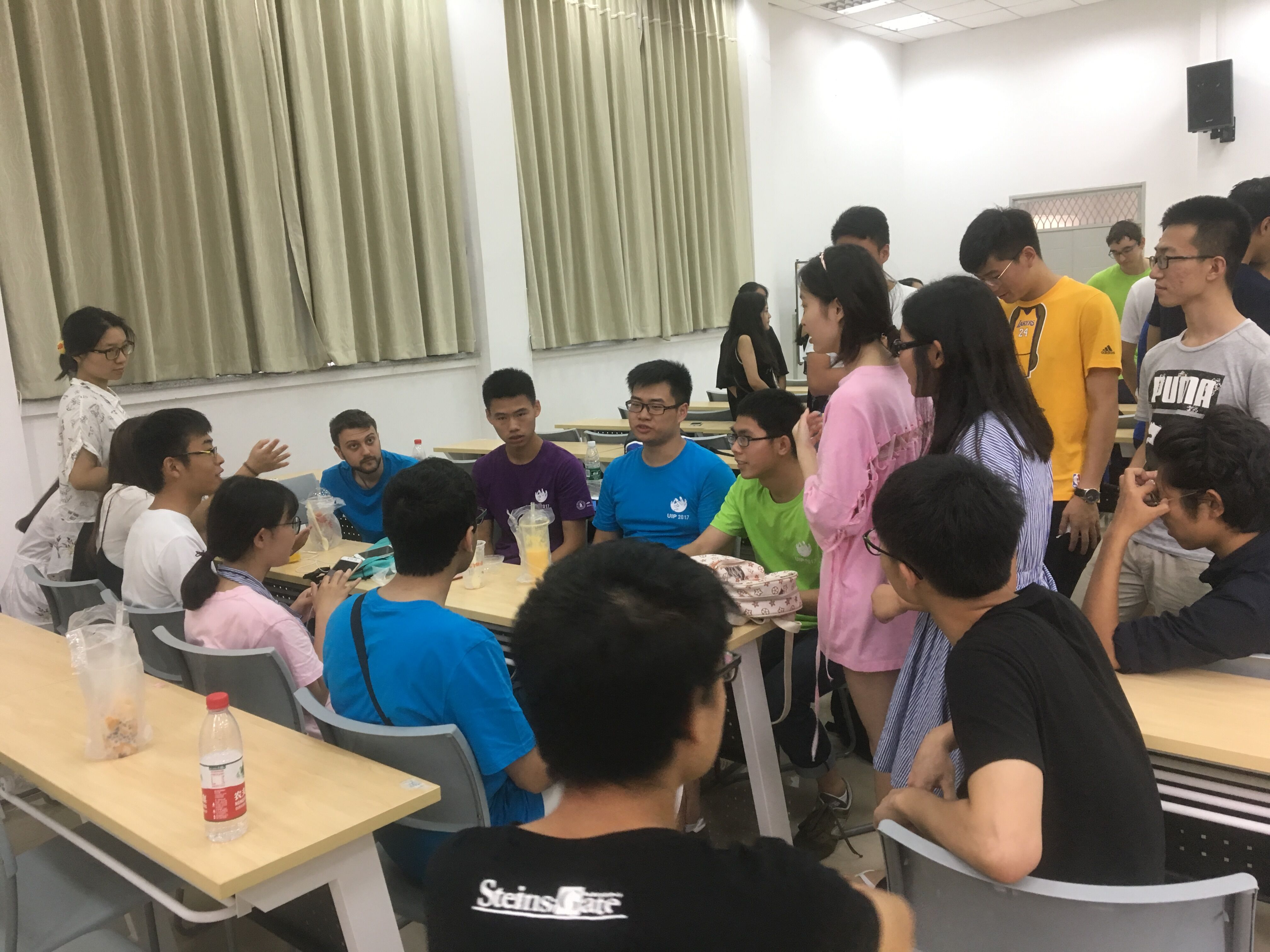 电子信息学院三个国际交流营小组组长主动地向中国科技大学和国外大学友人表示热烈欢迎。之后,组长带头进行自我介绍,每个组员都积极地向高校友人进行介绍并对他们表示了热烈欢迎,关心他们是否适应中国的气候和生活习惯,交流的气氛逐渐热烈起来。国际交流营小组的学生为外国同学描绘了中国文化和川蜀风情,外国友人对此表现出了浓厚的兴趣,主动提议在之后的两周交流时间里去体验成都这座城市的魅力。另外,交流小组和来自中国科技大学的七位同学热情地沟通,因为组员和参与的中科大学生专业相仿,因此对一些专业问题进行了深入地探讨,大大拉近了彼此间的关系。之后中科大的卢傲然同学主动上台表演,大家都兴致盎然,纷纷鼓掌示意。一场精彩绝伦的相声贯口,将现场气氛推向高潮,众人纷纷拍手叫好。之后国际交流小组的同学邀请高校校友参观川大校园,大家离开会场,best365中国官方网站电子信息学院2017年国际交流营开幕仪式正式圆满结束。