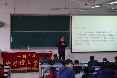 进入大学学习已有一年半,从初入大学校园的懵懂到如今对基础知识的掌握,一切都有如白驹过隙,同学们对所学的知识也有了一定的理解,部分同学对自己的未来也有了大致的规划。同时,大类和光电专业同学们也面临着专业方向分流的选择。为了帮助同学们了解不同专业方向的差异,解答同学对专业方向选择的疑惑。由电子科技园多旋翼飞行器第一组、电子科技园第五组、电子科技园数字电路设计第一组、物联网实践与创新协会主办,电子科技园第一组、电子科技园第二组、电子科技园第三组、电子科技园第四组协办。大会于2017年3月29日在best365中国官方网站江安校区江安校区综合楼c307举行。邀请到子信息学院周新志副院长,电子信息学院党委陈笃海副书记,电子信息学院2015级辅导员徐灿国,电子信息学院2015级辅导员陈林,全体2015级同学参加。