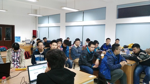 19点20分,会议准时开始。首先,主持人简单的介绍了活动的流程,然后便进入了本次活动的最关键环节,分小组进行交流讨论,动手操作,把理论化为实践,此过程中,主办人员会协助解决讨论中遇到的一系列疑难问题。现场气氛浓厚,讨论热烈。同学们争相发表自己的见解,对于同一个问题提出多种不同的解决方案,真可谓是条条大路通罗马,殊途同归。在与不同专业院系的同龄人进行交流的过程中,同学们不仅扩展了自己的知识面,开拓了视野,也交到了脾气相投,兴趣相同的好朋友。热热烈烈的讨论结束后,主持人将收集到的典型问题和优秀成果进行展示,并请相关同学进行现场讲解,相信这些值得学习和借鉴的例子会让同学们受益匪浅。9点整,会议在主持人精彩的总结中结束,同学们有序的退场。个别仍有疑惑的同学则继续留下来向主办人员请教问题,主办人员也热情耐心的他们解疑。