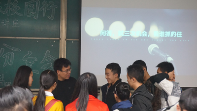晚上7点整,由于交通问题,嘉宾未能及时赶到,但活动现场中同学们整齐的坐着,安静的等待嘉宾的到来。一分钟后,嘉宾赶到了现场,并向大家表示歉意。之后,活动正常开始。首先,由主持人致开场词并对同学们的到来表示欢迎,随后她向大家介绍了嘉宾李明,交代了本次分享会的背景、目的、主要内容、时间安排等。随后,李明开始了他的讲话。他向大家介绍了自己的人生经历,包括学习、感情、创新及创业。在会上,他谈到,“专业没有限制,思想才有”,让同学们开阔视野,充分利用川大的资源。并说到,“钱跟着成功走,成功跟着人走,人跟着激情走”,说激情是人成功的几大要素之一。他旁征博引,为同学进行了俩小时的精彩谈话。最后,随着讲话尾声的到来,创业分享会圆满结束。