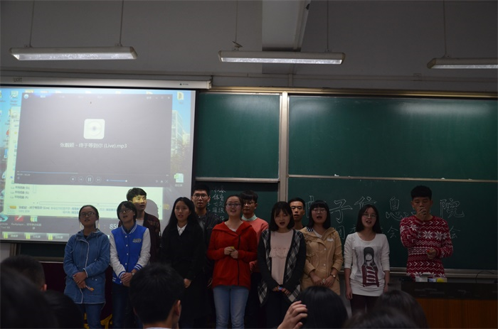 晚7点,例会正式开始。首先由电子信息学院学生团委副书记姜越同学对新加入团委学生会的同学们表示了热烈欢迎,之后宣布表演正式开始。接着,团委学生会十一个部门有序地开始了表演。他们表演的形式各式各样,有激情四射、欢乐十足的小品,有感人动听的歌曲,有热情如火的舞蹈,还有趣味十足的角色扮演。各个部门的干事都十分积极投入地参与到有趣的表演中,引起台下一阵阵笑声。台下观看表演的干事们也和台上的表演者不断互动,对精彩的表演发出赞叹,并且用手机留下许多有意思的片段。各部门自表演完毕之后,都获得了大家的激烈掌声。最后,团委副书记姜越同学又做了简短总结,并宣布团委学生会第一次例会圆满结束。