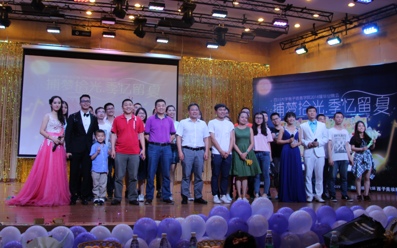 6月10日晚上7点,电子信息学院在川大望江校区文华活动中心二楼音乐厅举行了“捕梦拾光.季忆留夏”2016届毕业生晚会。学院党委蒋斌书记、周新志副院长、陈笃海副书记、院长助理杨阳老师及学院青年教师代表参加了本次晚会。