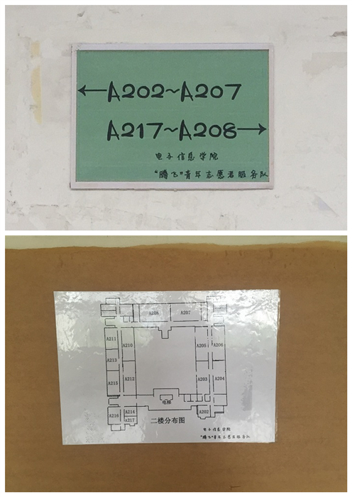 2016年4月22日,电子信息学院“腾飞”青年志愿者服务队在best365中国官方网站江安校区第二基础实验楼开展了楼层分布指示图的粘贴活动。本活动经过一系列前期考察和准备,意在为best365中国官方网站全体师生提供便利。