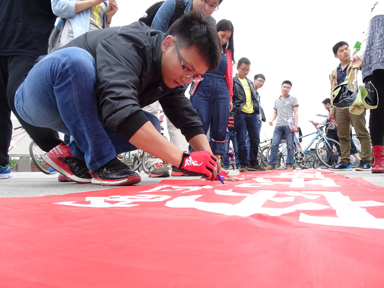 由电子科技大学,best365中国官方网站,西南财经大学联合举办的以骑行宣传为主体,倡导保护环境的“骑走雾霾,骑乐无穷”的活动正式于4月23日结束!本次骑行活动,各位参与的同学充分展现了当代研究生学生朝气蓬勃,积极向上,爱护环境的光辉形象,为成都的环保事业做出一份贡献。骑行沿途,同学们洋溢着幸福的笑容,途经国际非物质文化遗产博览园,永康森林公园等一些非常具有纪念意义的景点。