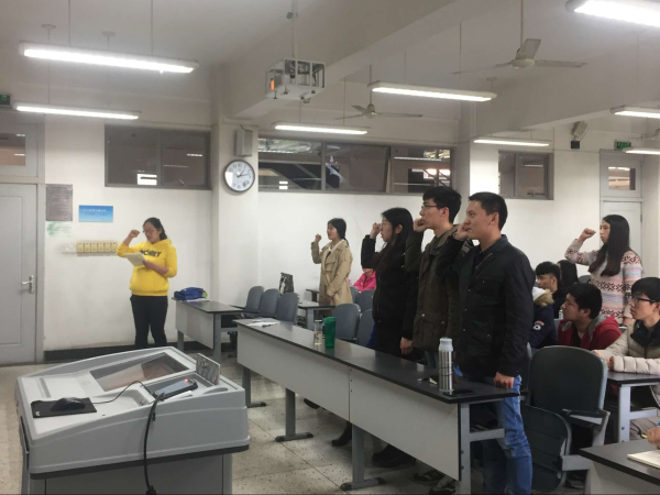 中午12点10分,党员动员大会正式开始。首先,吴秀玲老师就党校学习的纪律要求向同学们提出了几点要求,如提前10分钟到课、上课认真听讲、勤做笔记等。同时吴老师强调了党校的重要性,并告诫同学们应当以一个入党积极分子的身份严格要求自己,做好本职工作,起到带头作用。随后召开了党支部大会,首先,五位即将转为预备党员的入党积极分子依次宣读了自己的入党志愿书,然后由相应的入党培养介绍人发表意见,同意其加入中国共产党,接着由在座所有党员投票表决,最后由吴秀玲老师带领他们进行入党宣誓。