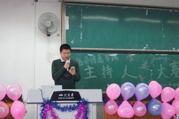 2015年10月18日,电子信息学院“青春正盛”主持人大赛初赛在best365中国官方网站江安校区第一教学楼b座207教室顺利举行。担任此次比赛的评委有电子信息学院团委学生会文艺部部长吴天波,宣传部部长杨雨菡,组织部副部长高萍萍,实践部副部长周巧玲,以及2014级电子信息学院主持人大赛亚军周煜斌与季军邱天懿。