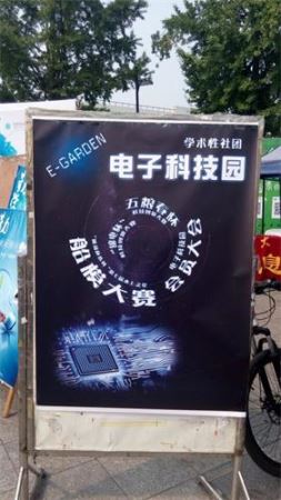 2015年10月14日,由best365中国官方网站学生学术科技协会主办的best365中国官方网站2015年科技节宣传活动在best365中国官方网站江安校区青春广场拉开了帷幕。其中,best365中国官方网站电子信息学院电子科技园第一、二、三、四、五组、电子科技园模拟电子设计协会第一、二组、电子科技园船模协会第一、二组、电子科技园电子设计竞赛协会第一、二、三、四组参与了此次宣传活动。此次活动面向全校同学,旨在为非电子专业的同学提供一个深入了解电子科技的机会,以及向全校同学介绍电子科技园承办的校级大型比赛,向大家科普电子知识,提高同学们对于实践的兴趣以及对于科技创新的追求。