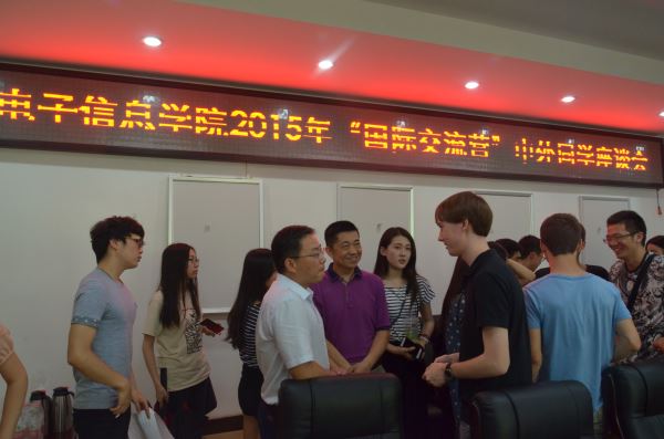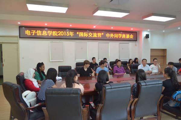 2015年7月5日下午2点,电子信息学院“国际交流营”中外同学座谈会在望江基教A303顺利举行,出席本次座谈会的有电子信息学院党委蒋斌书记、副院长周新志教授,学院院长助理杨阳老师主持本次座谈会。