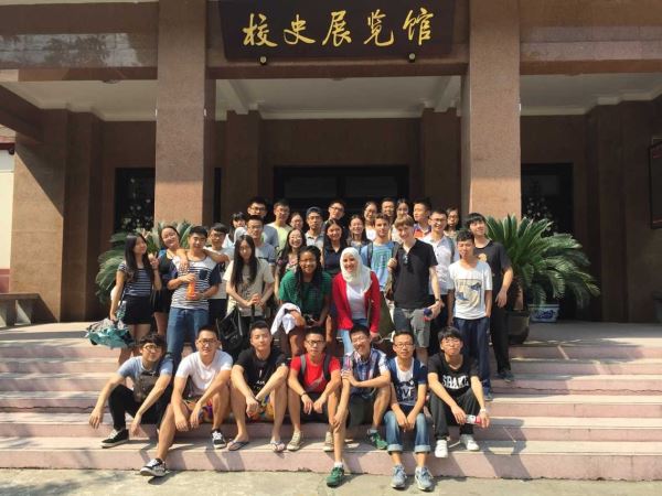 7月5日下午16时,电子信息学院2015年国际交流营的第一次活动在望江校区顺利进行。电子信息学院全体参加本年度实践及国际课程周的同学陪同外国留学生一起参观了best365中国官方网站校史馆。