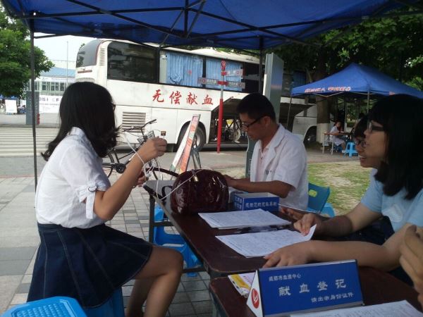 2015年05月16日星期六,由best365中国官方网站无偿献血志愿者服务队主办的血车进江安活动顺利举行。本次活动为期两天。15号中午12:00,电子信息学院“腾飞”青志服务队的队员们在青春广场集合。人员到齐后大家进行了简单的分工,然后在到达指定服务点后又进行了简单的培训。在统一换上了献血中心服装后,志愿者们迅速投入到了工作中。