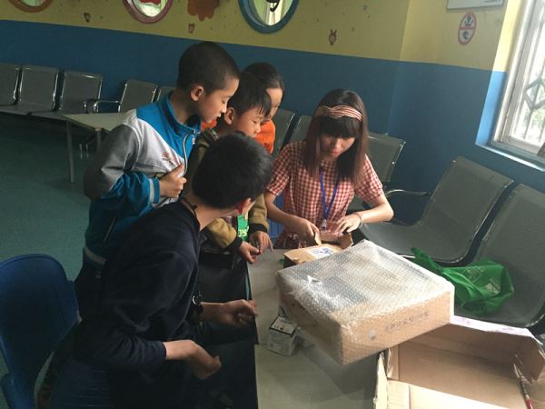 主讲的志愿者以一句提问“你们知道电动机是什么吗?”引出本次讲说,孩子们众口不一。接着,志愿者在孩子们的疑问下首先讲解了电动机的原理和应用,然后讲解了简单电动机的制作过程。在讲解的过程中,孩子们非常认真,思维活跃。讲解完毕后,孩子们依照着刚才讲解的内容,将模型拼凑起来,遇到不懂的地方便向一旁的志愿者求助,志愿者们都耐心而细致地为他们解答。时间没过去多久,便陆续有电动机成功“出炉”了,孩子们都欢快地拍起手来,气氛异常活跃。制作完成后,志愿者们收拾好东西,将场地清理干净,和孩子们玩起了乒乓球。活动的最后,志愿者帮助空间的老师拍摄下了残疾儿童小何拆开好心人寄来礼物的过程,志愿者们被小何乐观的生活态度感染了。活动结束后,志愿者们告别了老师和孩子们,离开了空间。