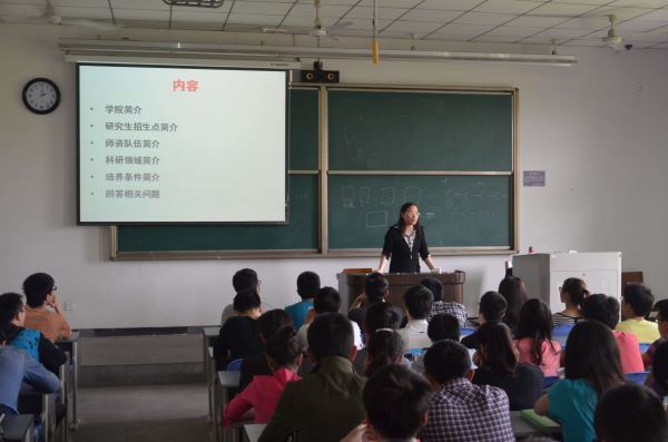 为了使2012级的同学对我院研究生专业有更深入的了解,更好地确定日后深造的发展方向,冯院长围绕同学们所关心的问题,从以下几方面介绍了我院研究生的相关情况:一、关于硕博专业研究方向的具体介绍;二、我院的师资队伍、科研领域的优势;三、关于研究生培养的三种模式的具体情况;四、我院的招生规模、研究生学习的特点、研究生奖学金等方面的问题;五、由往年数据统计说明本科和研究生毕业的就业情况等。在冯院长宣讲结束后,同学们就自己感兴趣的问题踊跃地向冯院长进行了提问,冯院长一一给以详细解答,认真说明了我们学院较其它学校的优势和不足并鼓励所有同学都进一步深造。短短的两节课结束时,同学们都意犹未尽,都想继续和冯院长进行进一步交流,在宣讲结束后同学们又单独就自己感兴趣的问题向冯院长提问。
