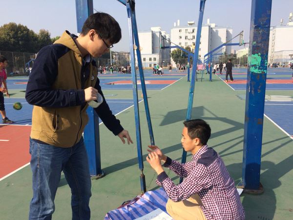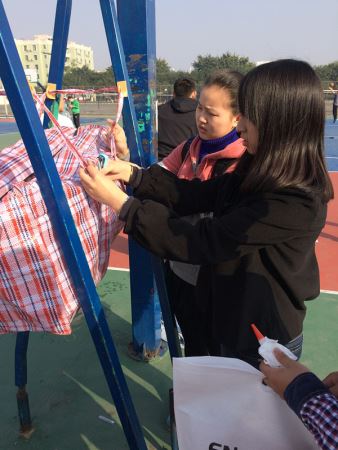上午9点,志愿者们准时在best365中国官方网站三号体育场大门口集合并开始活动。志愿者们拿出已经准备好的编织袋、挂钩等材料,在篮球架上量取适宜高度后粘贴好挂钩。紧接着志愿者们将已经修改的回收袋安装到挂钩上,并用打孔器在袋子四周进行打孔以防下雨或者塑料瓶中仍有的残留液体流出造成回收袋承重过多。随后,为了让同学们更清楚地了解回收袋的用途,志愿者们在袋的外侧张贴标语,同时也进入场地向同学们进行宣传。10点半许,在志愿者们一个多小时的努力下,回收袋全部安装完成,本次活动也顺利结束。